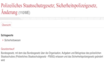 www.parlament.gv.at/PAKT/VHG/XXV/ME/ME_00110/index.shtml Neue Begründung: Mit dem Gesetz bekommt Österreich einen neuen Geheimdienst, der beim Eintreten einer "zu bewertenden Wahrscheinlichkeit" tätig werden kann. Die Behörde kann auf Daten zugreifen - ohne Anordnung/gerichtlichen Beschluss. Das Hinweisen auf Missstände kann zukünftig als gefährlich bewertet werden.