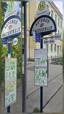 Nun könnte man wohl meinen, dass sich eine Sachbeschädigung nicht gehört und das wollen wir hiermit auch betonen. Allerdings ist dies seit Jahrzehnten in diesem Bezirk die erste derartige Übermalung und Sprayung der Fahrpläne in diesem Teil Hietzing, wo es geradezu hitzig wegen der wenig geliebten Buslinienführungsänderungen hergeht.