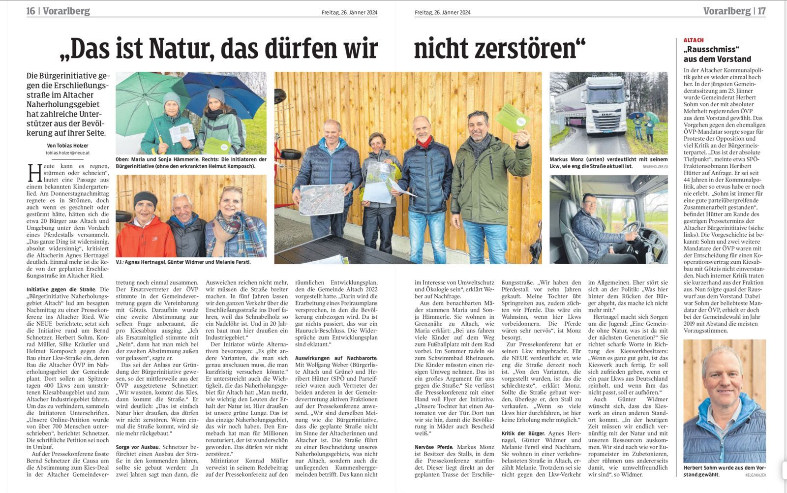 Berichtet wird auch im Feldkircher Anzeiger sowie in der VN.
