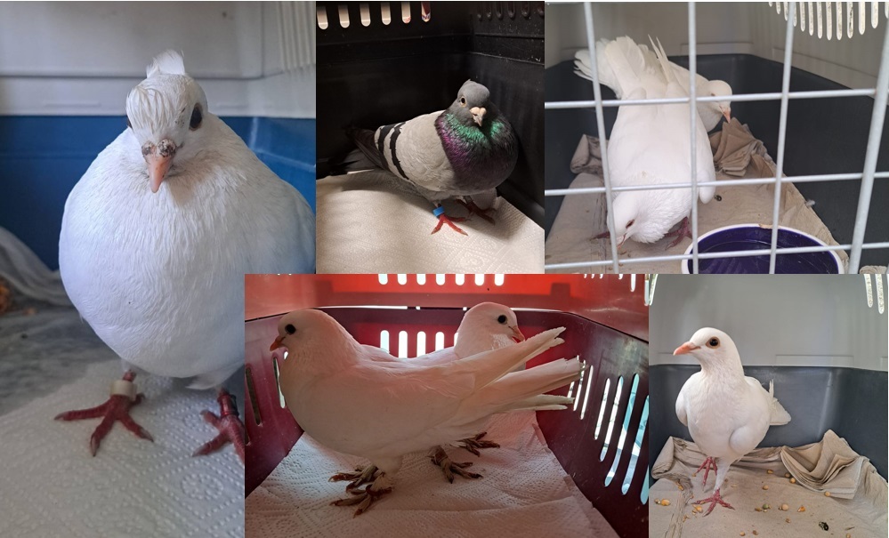 Auch haben wir inzwischen dutzende Brieftauben und noch mehr ausgesetzte Rassetauben sichern und versorgen müssen.
