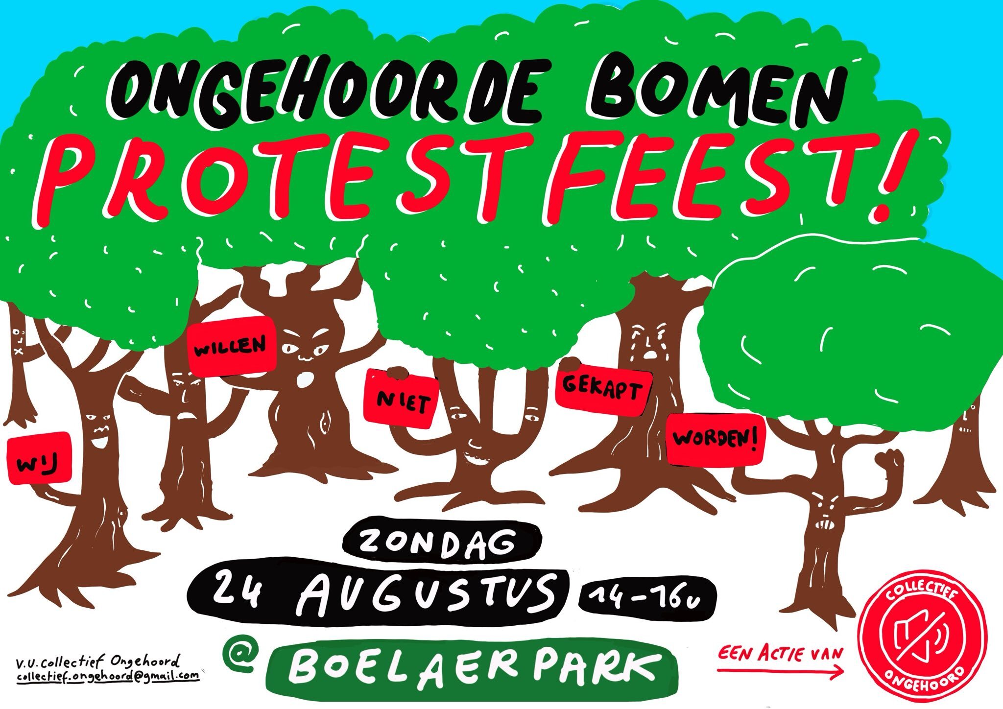 Kom en laat ook van u horen tijdens het Ongehoorde Bomen Protestfeest op 25/8 in het Te Boelaerpark in Borgerhout, van 14u. tot 16u.: fb.me/e/atsCgE1wF