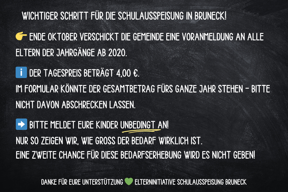 dass die Schulausspeisung für viele Familien in Bruneck von großer Bedeutung ist. Dank eures